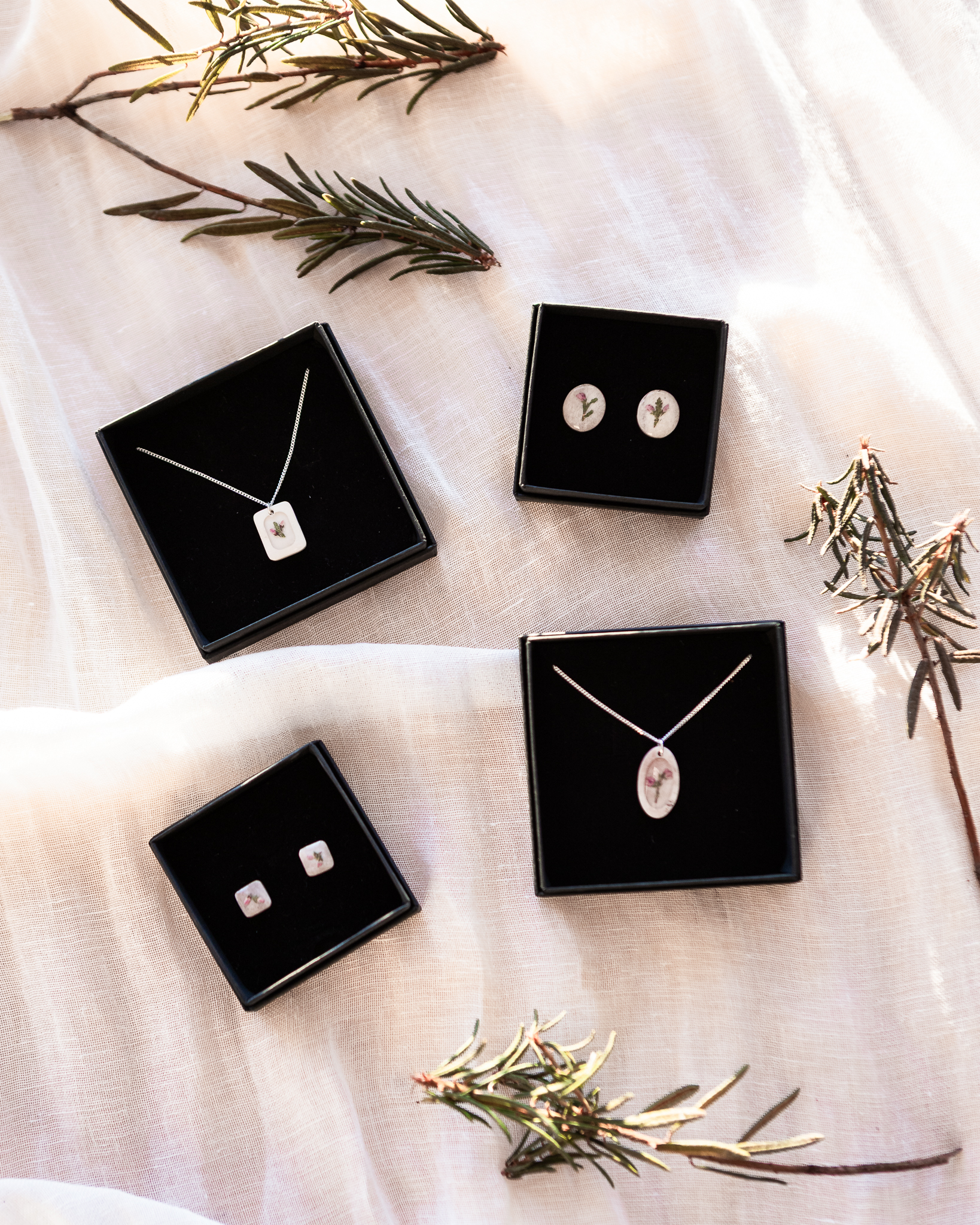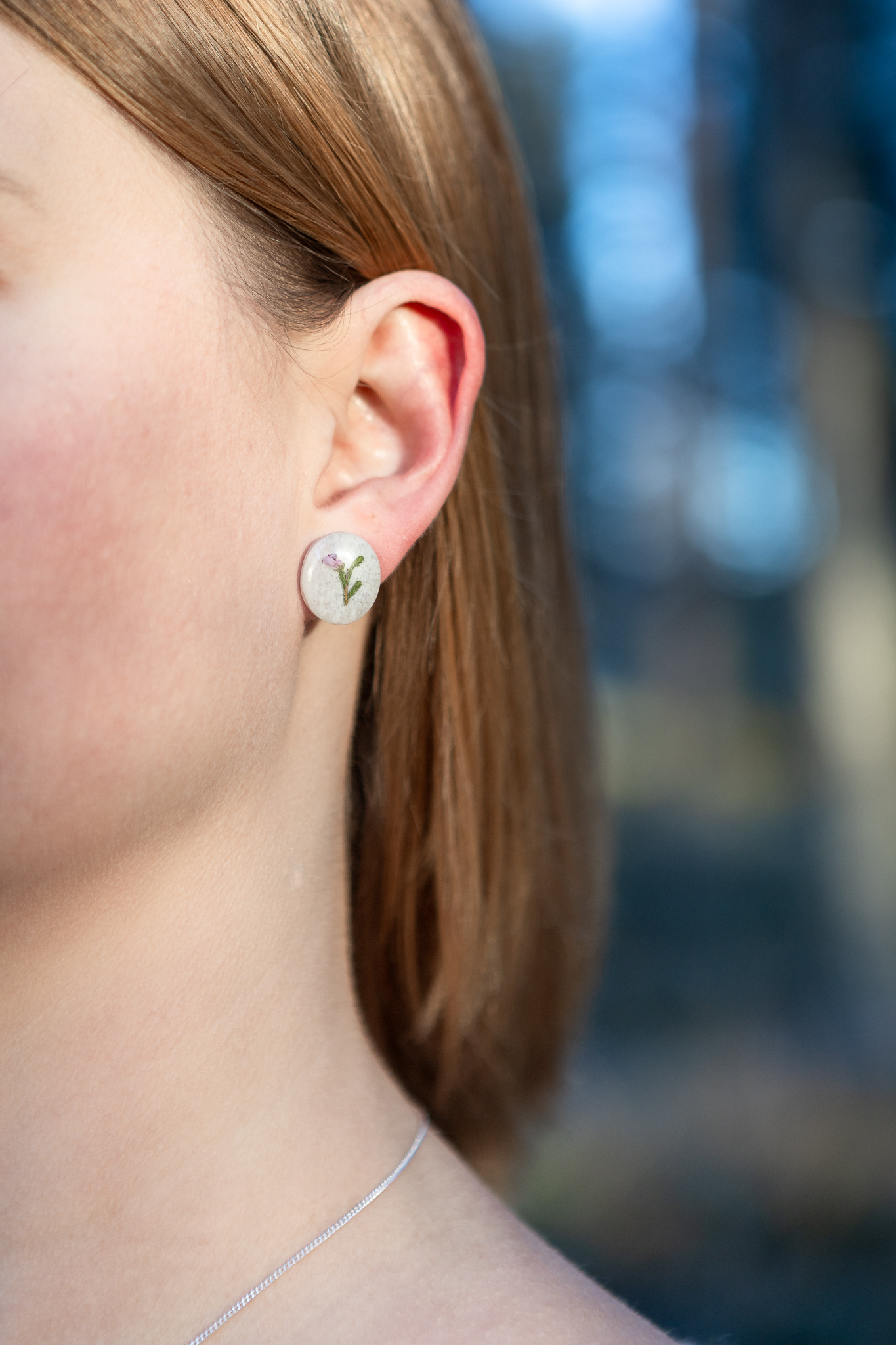 Materiaalina poronsarvi, aito luonnonkukka sekä kierrätty hopea 925. Valmistettu zero waste-periaatteella silmälasituotannon ylijäämästä.