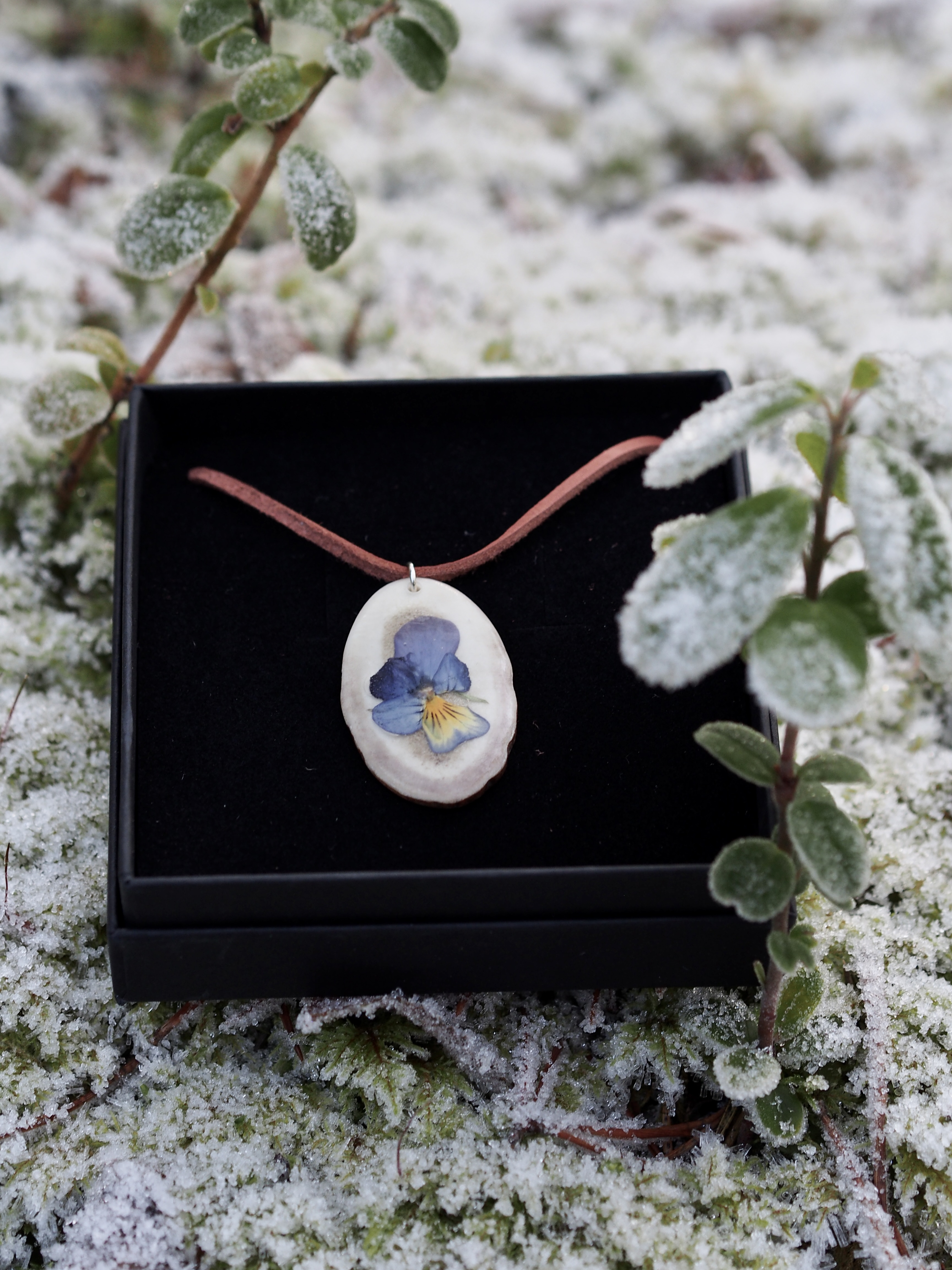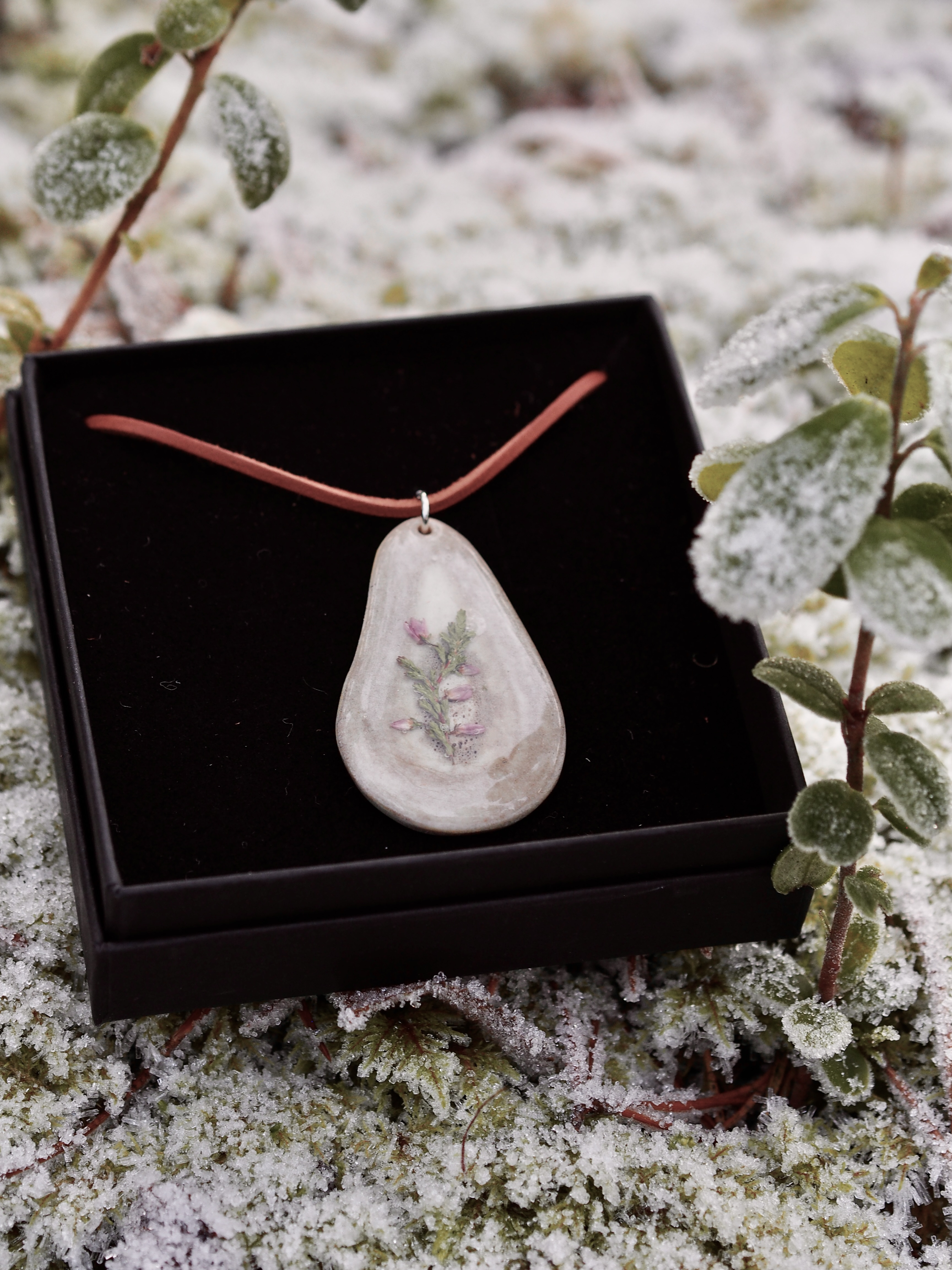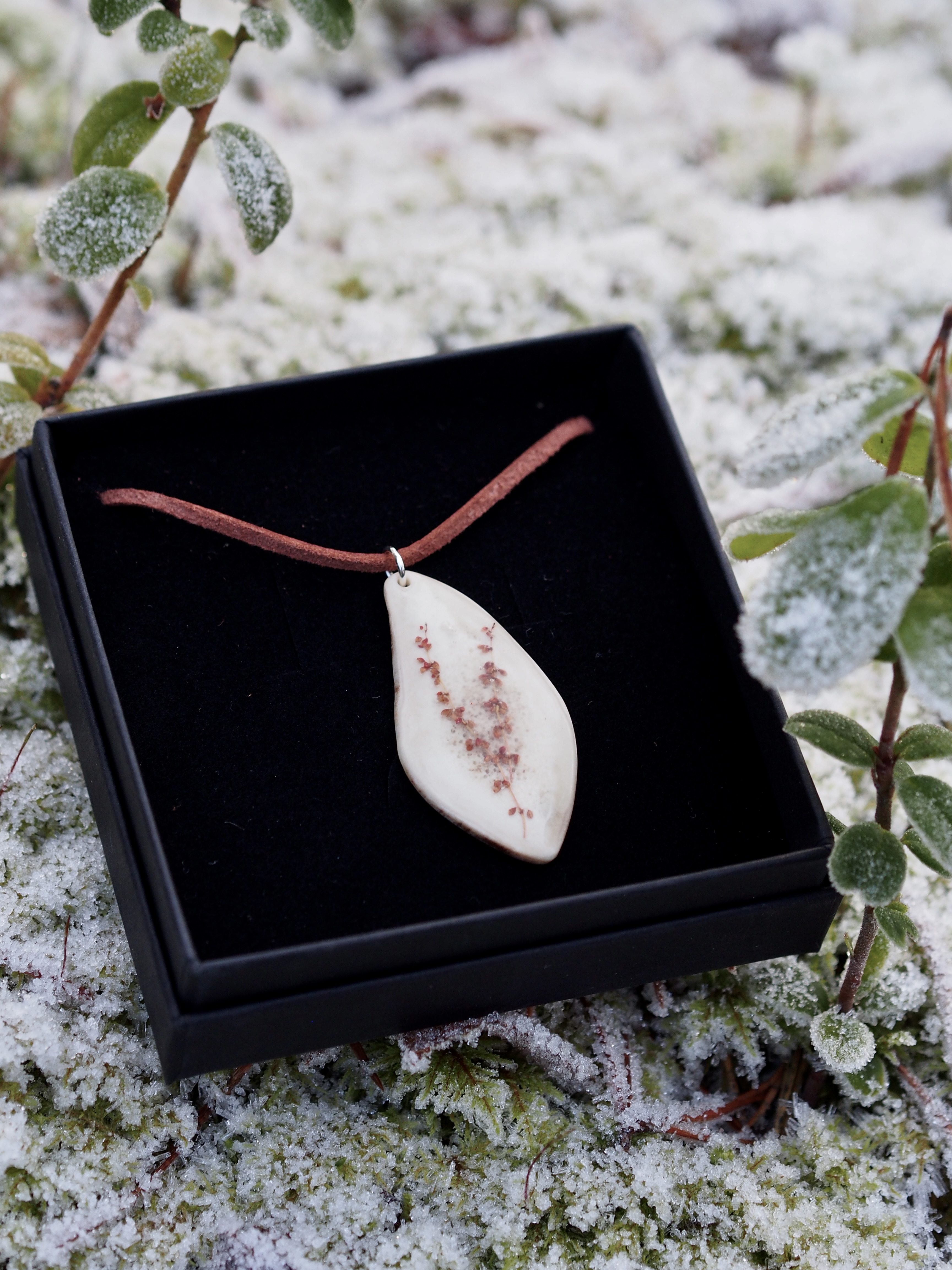 Toimitetaan kauniissa mustassa korurasiassa, joka toimii hyvin myös lahjarasiana. Valmistettu käsityönä Sodankylässä. Ei suositella hartsiallergikoille. Tuotteelle on myönnetty Avainlippu.