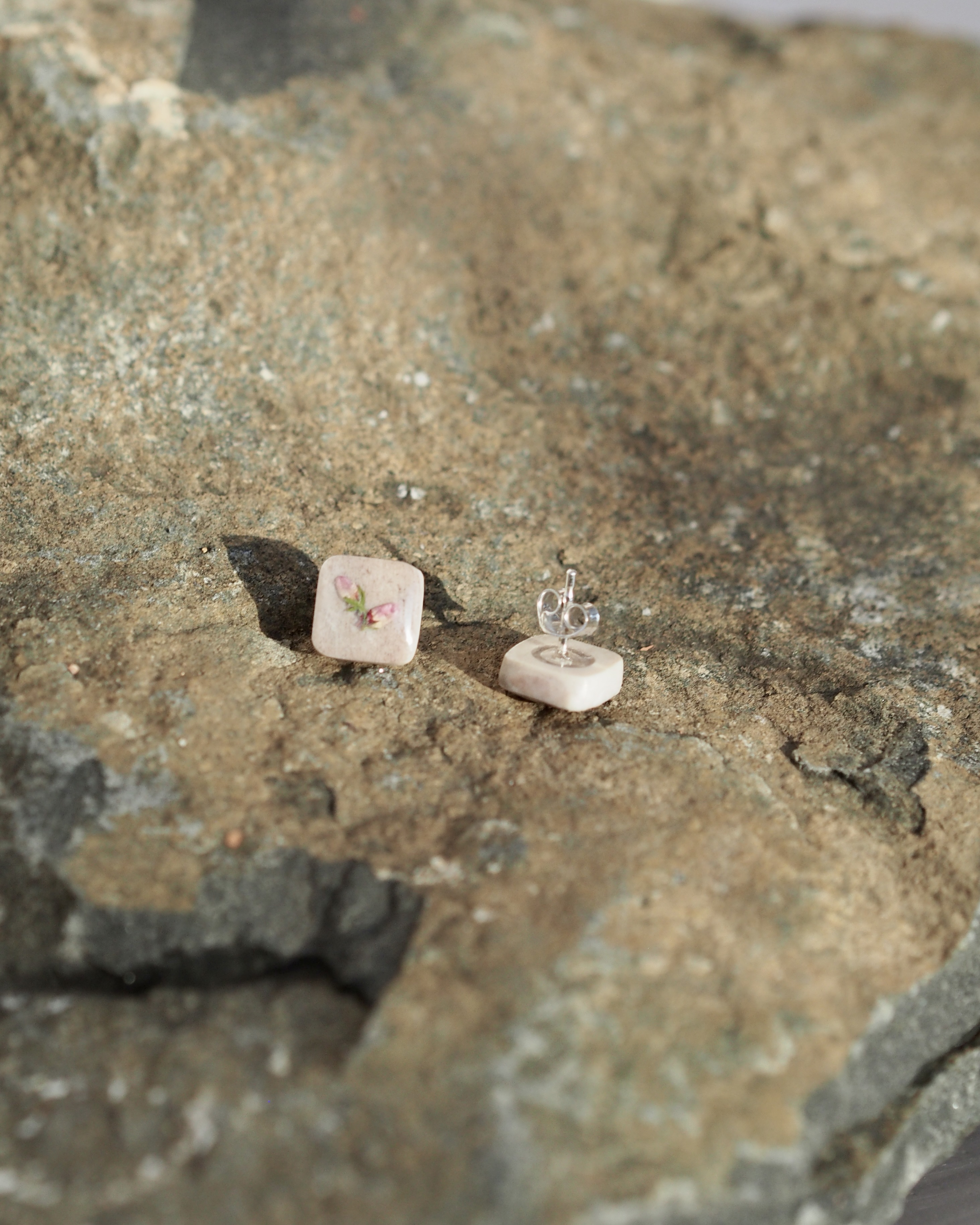 Rouku on pieni neliskanttinen korvakoru, joka toimii yhtä hyvin herkkänä juhla-asusteena, kuin päivittäisenä luottokorvakoruna. Koristeena tässä korussa aito Lapin lemmikki. Korvakorun koko noin 10x10mm.