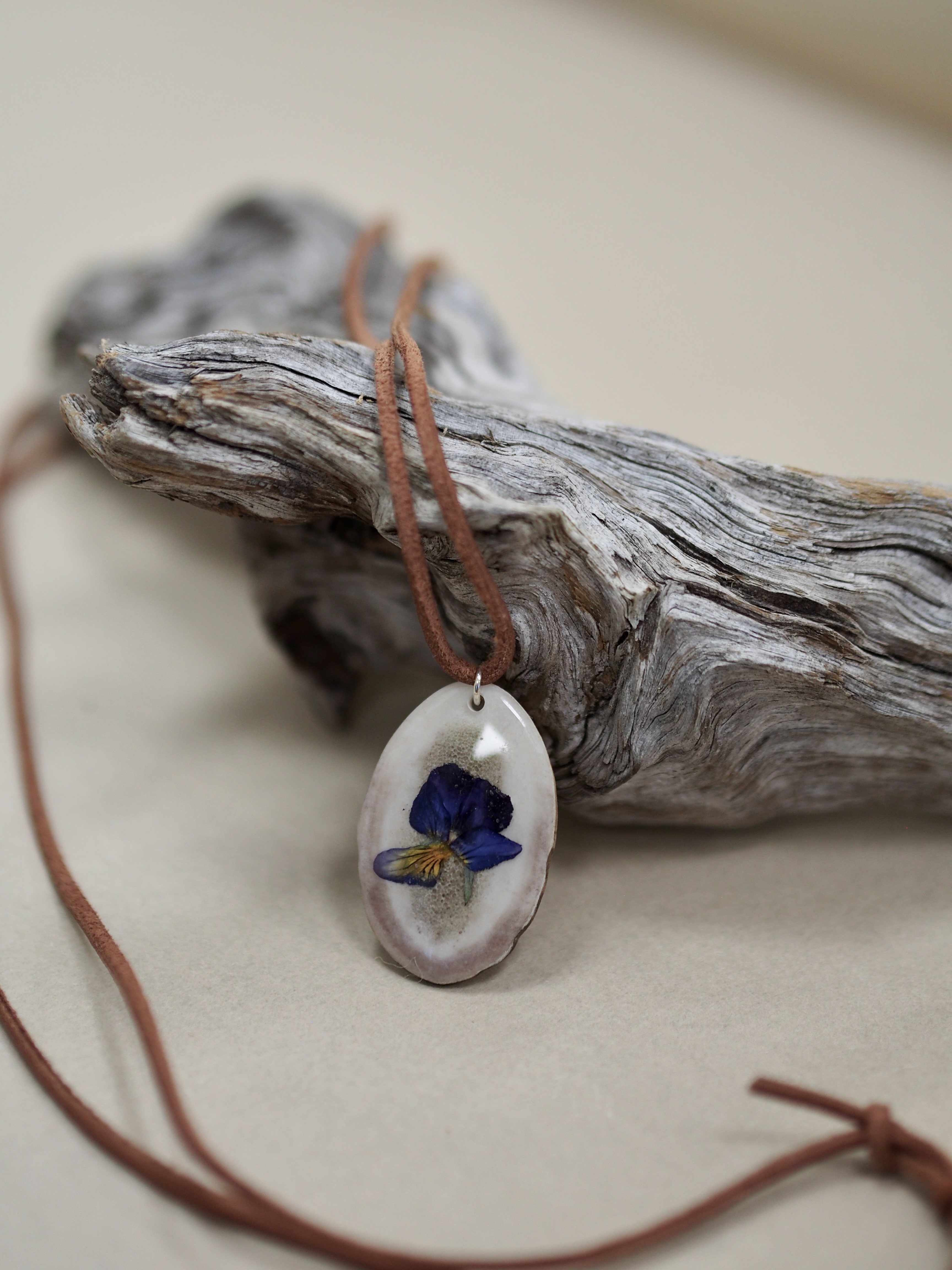 Materiaalina poronsarvi, aito luonnonkukka sekä kierrätty hopea 925. Valmistettu zero waste-periaatteella silmälasituotannon ylijäämästä.
